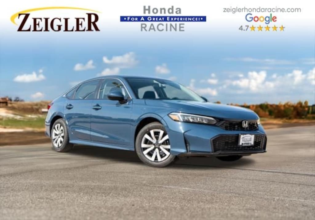 32/41 City/Highway MPG Blue Lagoon Pearl 2026 Honda Civic LX FWD CVT At Zeigler Honda of Racine, we take pride in treating our customers like family, ensuring that your experience is one that you will never forget.Take advantage of our VIP test drive and experience by calling us at (262) 822-3231. We are proud to service customers in Racine, Mt. Pleasant, Milwaukee, Kenosha, and surrounding areas! See dealer for complete details, price may exclude certification, added accessories and/or packages, certain taxes, $399 doc fee, charges and/or fees. Dealer is not responsible for pricing errors. Book values should be considered estimates only. Some of our used vehicles may be subject to unrepaired safety recalls.