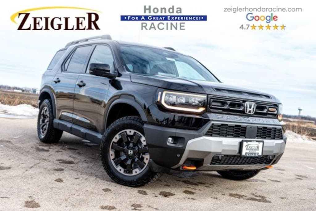 Crystal Black AWD ++, NAVIGATION, HEADS UP DISPLAY, APPLE CARPLAY, ANDROID AUTO, BLIND SPOT MONITOR, REMOTE START, WIRELESS PHONE CHARGER, ADAPTIVE CRUISE CONTROL, LANE DEPARTURE WARNING, PANORAMIC ROOF, PARKING SENSORS, POWER LIFTGATE, LEATHER INTERIOR, HEATED SEATS, MEMORY SEATS, TOW PACKAGE, BOSE AUDIO, BACKUP CAMERA, KEYLESS ENTRY, BLUETOOTH. 2026 Honda Passport TrailSport Elite AWD 10-Speed Automatic At Zeigler Honda of Racine, we take pride in treating our customers like family, ensuring that your experience is one that you will never forget.Take advantage of our VIP test drive and experience by calling us at (262) 822-3231. We are proud to service customers in Racine, Mt. Pleasant, Milwaukee, Kenosha, and surrounding areas! See dealer for complete details, price may exclude certification, added accessories and/or packages, certain taxes, $399 doc fee, charges and/or fees. Dealer is not responsible for pricing errors. Book values should be considered estimates only. Some of our used vehicles may be subject to unrepaired safety recalls.