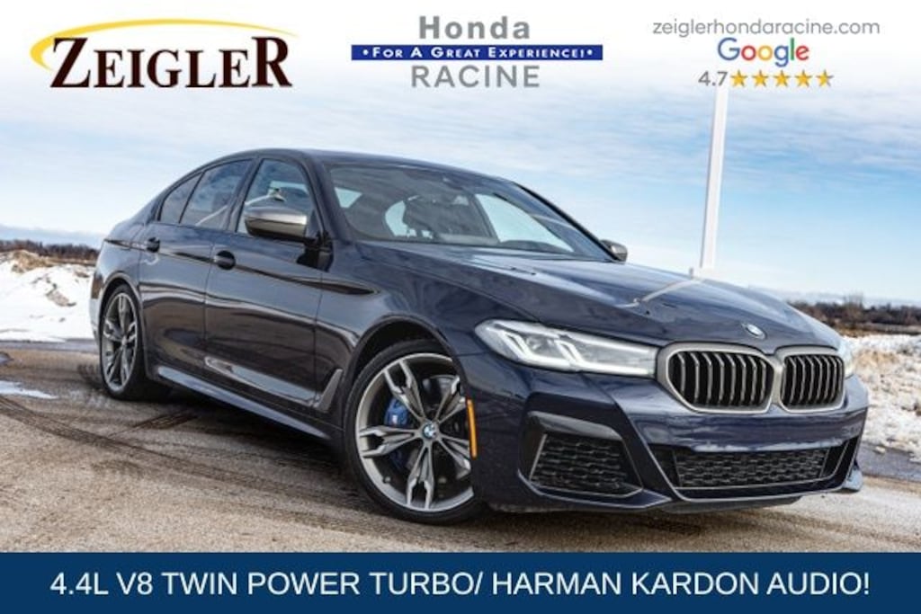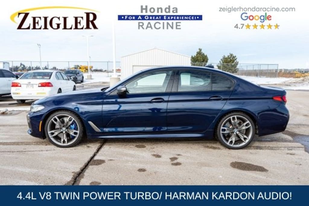 2023 Tanzanite Blue II Metallic BMW 5 Series M550i xDrive âFOR A GREAT EXPERIENCEâ visit Zeigler Honda of Racine, because we take pride in treating our customers like family, ensuring that your experience is one that you will never forget. We have 4.7 Google Rating! Making our store the highest rated Honda dealer in the state of Wisconsin! Every vehicle has been through a multi-point safety inspection and professionally cleaned and disinfected for your protection. With a convenient location off of I-94 at exit 333; we are proud to serve customers in Racine, Sturtevant, Caledonia, Mount Pleasant, Union Grove, Burlington, Kenosha, Bristol, Waukesha, Milwaukee, Oak Creek and many other surrounding areas! Our Sales Consultants are Factory Certified and have earned some of the highest customer satisfaction ratings in Southeast Wisconsin. We specialize in New Honda, Certified Pre-Owned Honda, as well as many other makes and models that fit all budgets and prices. We offer affordable purchase and leasing options. If you are traveling from Waukegan, Gurnee, Naperville, Pleasant Prairie, Antioch, Fox Lake, or even Madison, feel free to browse our entire inventory of new or pre-owned vehicles right from your home: zeiglerhondaracine.com. Even if we don't have the exact vehicle in our inventory, we will gladly bring one in for you and still guarantee the lowest price possible. A little further than a hop, skip or a jump? We can arrange shipping & delivery! Price may exclude certification, added accessories and/or packages, certain taxes, $399 doc fee, charges and/or fees. Dealer is not responsible for pricing errors, although we strive to be accurate, we are human. The value of used vehicles varies with mileage, usage and condition. Book values should be considered estimates only. Some of our used vehicles may be subject to unrepaired safety recalls. Check for a vehicle's unrepaired recalls by VIN at http://vinrcl.safercar.gov/vin/. See dealer for complete details.