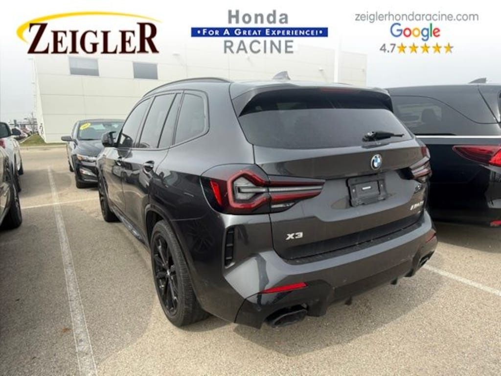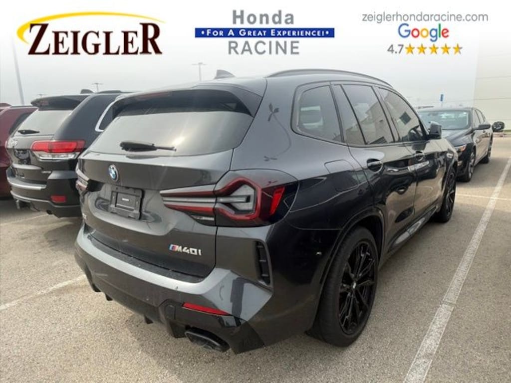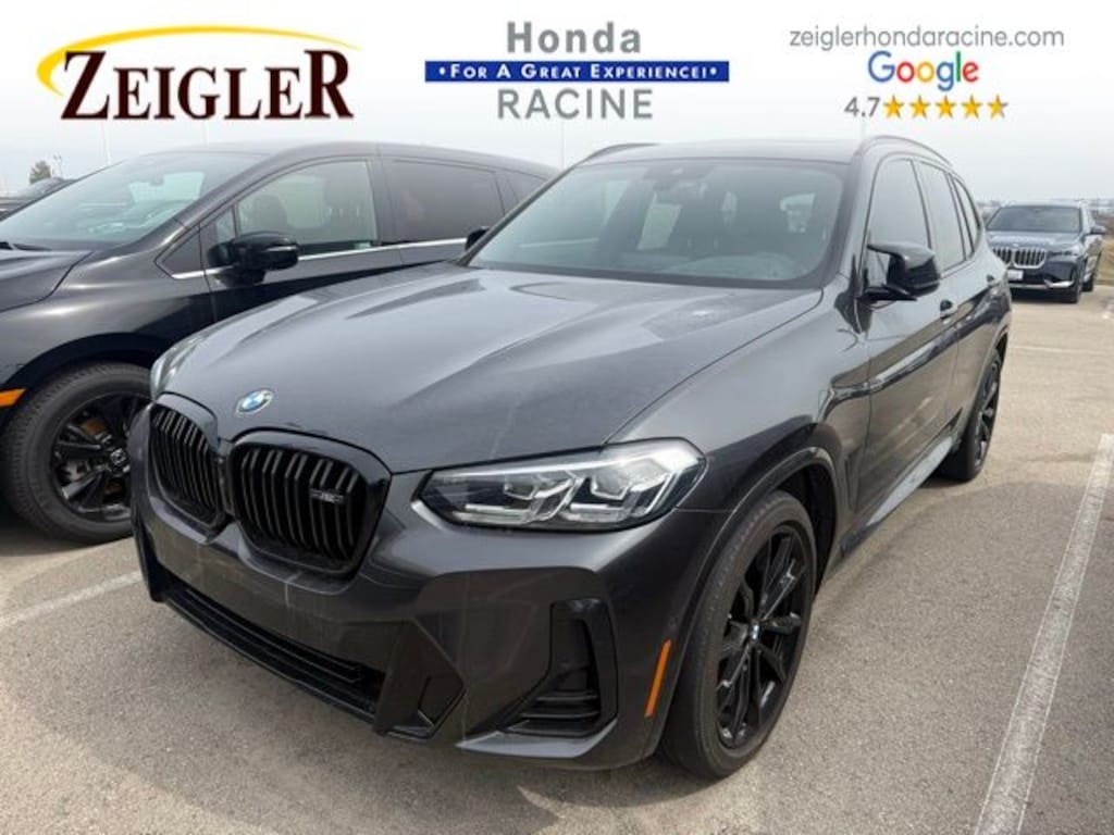 2023 Dark Graphite Metallic BMW X3 M40i âFOR A GREAT EXPERIENCEâ visit Zeigler Honda of Racine, because we take pride in treating our customers like family, ensuring that your experience is one that you will never forget. We have 4.7 Google Rating! Making our store the highest rated Honda dealer in the state of Wisconsin! Every vehicle has been through a multi-point safety inspection and professionally cleaned and disinfected for your protection. With a convenient location off of I-94 at exit 333; we are proud to serve customers in Racine, Sturtevant, Caledonia, Mount Pleasant, Union Grove, Burlington, Kenosha, Bristol, Waukesha, Milwaukee, Oak Creek and many other surrounding areas! Our Sales Consultants are Factory Certified and have earned some of the highest customer satisfaction ratings in Southeast Wisconsin. We specialize in New Honda, Certified Pre-Owned Honda, as well as many other makes and models that fit all budgets and prices. We offer affordable purchase and leasing options. If you are traveling from Waukegan, Gurnee, Naperville, Pleasant Prairie, Antioch, Fox Lake, or even Madison, feel free to browse our entire inventory of new or pre-owned vehicles right from your home: zeiglerhondaracine.com. Even if we don't have the exact vehicle in our inventory, we will gladly bring one in for you and still guarantee the lowest price possible. A little further than a hop, skip or a jump? We can arrange shipping & delivery! Price may exclude certification, added accessories and/or packages, certain taxes, $399 doc fee, charges and/or fees. Dealer is not responsible for pricing errors, although we strive to be accurate, we are human. The value of used vehicles varies with mileage, usage and condition. Book values should be considered estimates only. Some of our used vehicles may be subject to unrepaired safety recalls. Check for a vehicle's unrepaired recalls by VIN at http://vinrcl.safercar.gov/vin/. See dealer for complete details.
