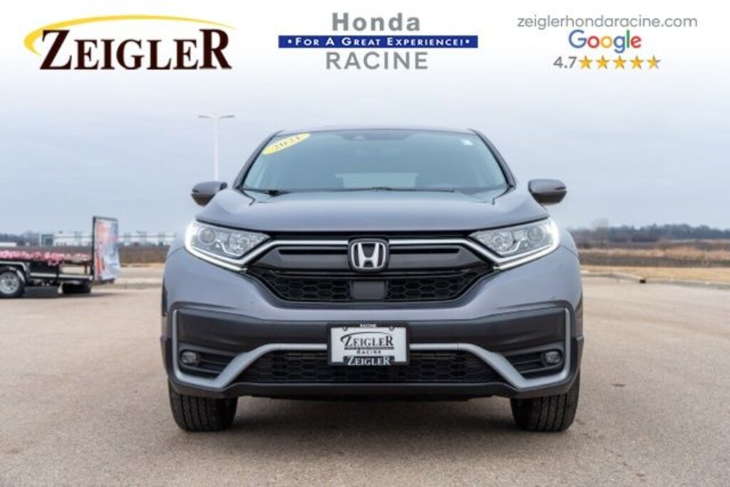2021 Modern Steel Metallic Honda CR-V EX-L âFOR A GREAT EXPERIENCEâ visit Zeigler Honda of Racine, because we take pride in treating our customers like family, ensuring that your experience is one that you will never forget. We have 4.7 Google Rating! Making our store the highest rated Honda dealer in the state of Wisconsin! Every vehicle has been through a multi-point safety inspection and professionally cleaned and disinfected for your protection. With a convenient location off of I-94 at exit 333; we are proud to serve customers in Racine, Sturtevant, Caledonia, Mount Pleasant, Union Grove, Burlington, Kenosha, Bristol, Waukesha, Milwaukee, Oak Creek and many other surrounding areas! Our Sales Consultants are Factory Certified and have earned some of the highest customer satisfaction ratings in Southeast Wisconsin. We specialize in New Honda, Certified Pre-Owned Honda, as well as many other makes and models that fit all budgets and prices. We offer affordable purchase and leasing options. If you are traveling from Waukegan, Gurnee, Naperville, Pleasant Prairie, Antioch, Fox Lake, or even Madison, feel free to browse our entire inventory of new or pre-owned vehicles right from your home: zeiglerhondaracine.com. Even if we don't have the exact vehicle in our inventory, we will gladly bring one in for you and still guarantee the lowest price possible. A little further than a hop, skip or a jump? We can arrange shipping & delivery! Price may exclude certification, added accessories and/or packages, certain taxes, $399 doc fee, charges and/or fees. Dealer is not responsible for pricing errors, although we strive to be accurate, we are human. The value of used vehicles varies with mileage, usage and condition. Book values should be considered estimates only. Some of our used vehicles may be subject to unrepaired safety recalls. Check for a vehicle's unrepaired recalls by VIN at http://vinrcl.safercar.gov/vin/. See dealer for complete details.