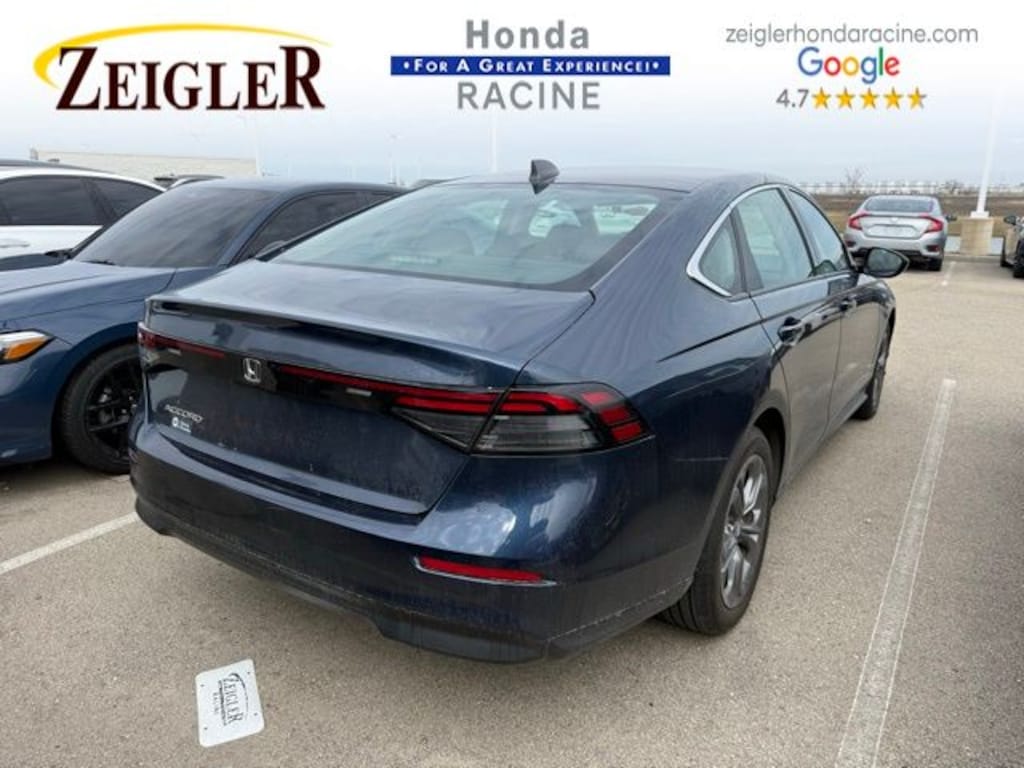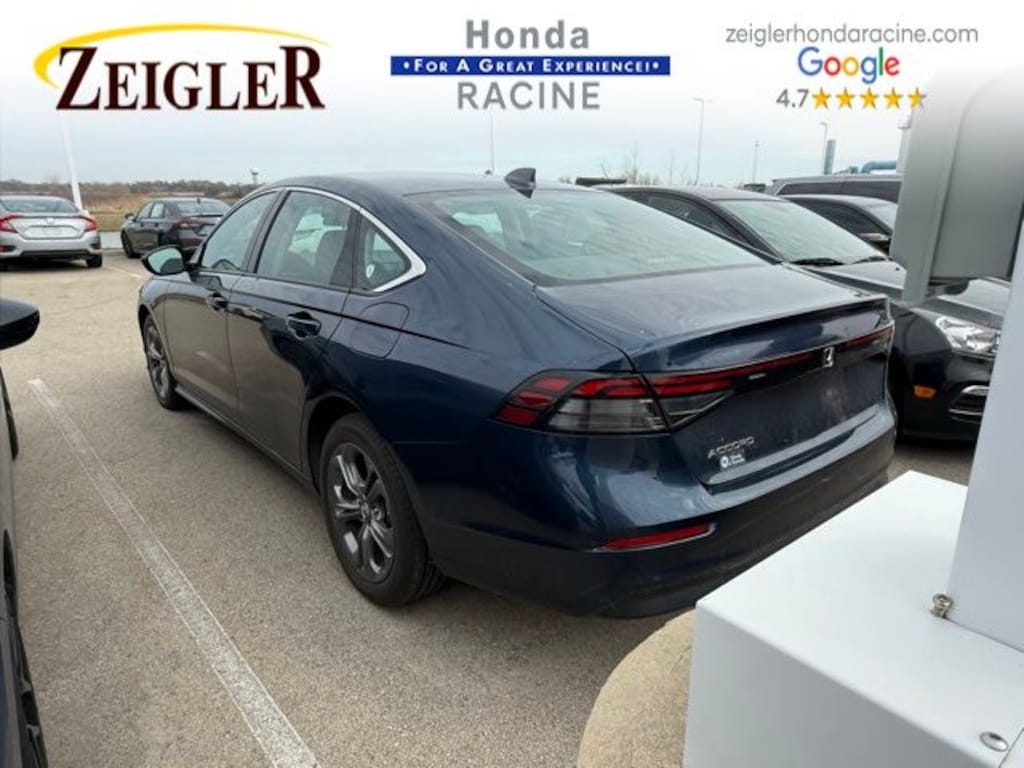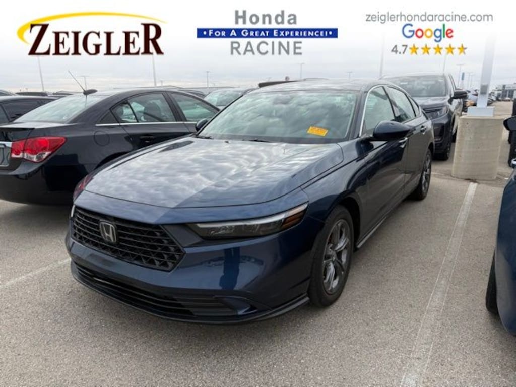 2024 Canyon River Blue Metallic Honda Accord EX âFOR A GREAT EXPERIENCEâ visit Zeigler Honda of Racine, because we take pride in treating our customers like family, ensuring that your experience is one that you will never forget. We have 4.7 Google Rating! Making our store the highest rated Honda dealer in the state of Wisconsin! Every vehicle has been through a multi-point safety inspection and professionally cleaned and disinfected for your protection. With a convenient location off of I-94 at exit 333; we are proud to serve customers in Racine, Sturtevant, Caledonia, Mount Pleasant, Union Grove, Burlington, Kenosha, Bristol, Waukesha, Milwaukee, Oak Creek and many other surrounding areas! Our Sales Consultants are Factory Certified and have earned some of the highest customer satisfaction ratings in Southeast Wisconsin. We specialize in New Honda, Certified Pre-Owned Honda, as well as many other makes and models that fit all budgets and prices. We offer affordable purchase and leasing options. If you are traveling from Waukegan, Gurnee, Naperville, Pleasant Prairie, Antioch, Fox Lake, or even Madison, feel free to browse our entire inventory of new or pre-owned vehicles right from your home: zeiglerhondaracine.com. Even if we don't have the exact vehicle in our inventory, we will gladly bring one in for you and still guarantee the lowest price possible. A little further than a hop, skip or a jump? We can arrange shipping & delivery! Price may exclude certification, added accessories and/or packages, certain taxes, $399 doc fee, charges and/or fees. Dealer is not responsible for pricing errors, although we strive to be accurate, we are human. The value of used vehicles varies with mileage, usage and condition. Book values should be considered estimates only. Some of our used vehicles may be subject to unrepaired safety recalls. Check for a vehicle's unrepaired recalls by VIN at http://vinrcl.safercar.gov/vin/. See dealer for complete details.
