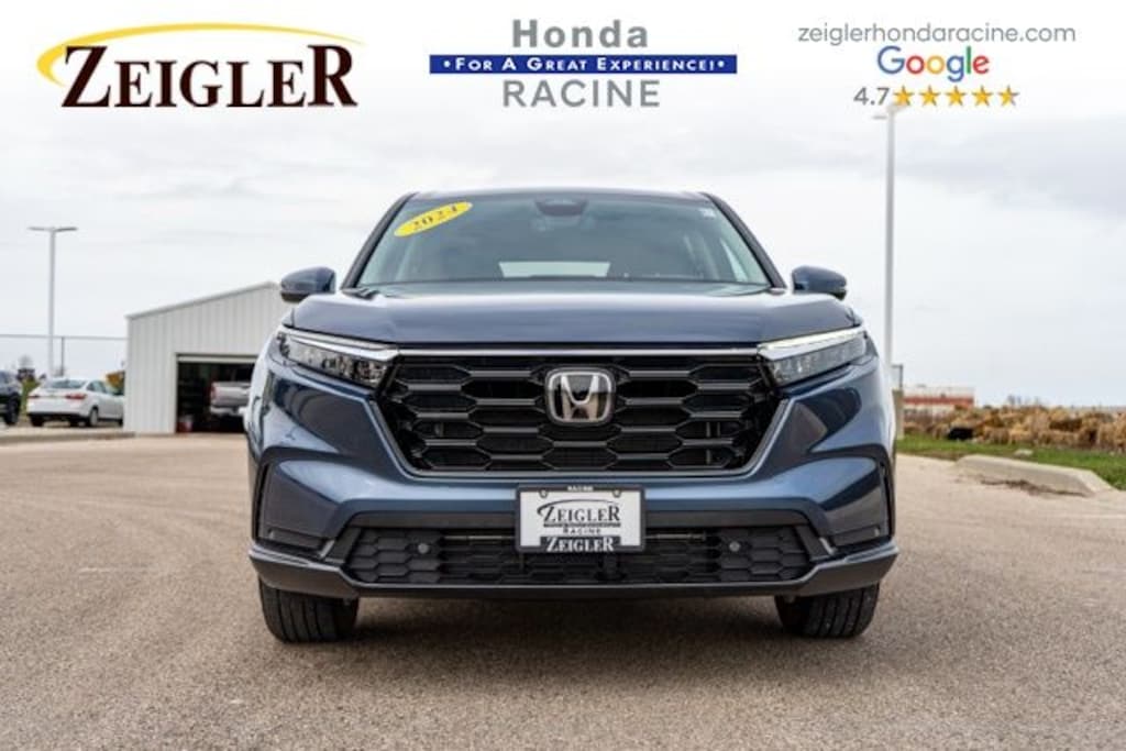 2024 Canyon River Blue Metallic Honda CR-V EX-L âFOR A GREAT EXPERIENCEâ visit Zeigler Honda of Racine, because we take pride in treating our customers like family, ensuring that your experience is one that you will never forget. We have 4.7 Google Rating! Making our store the highest rated Honda dealer in the state of Wisconsin! Every vehicle has been through a multi-point safety inspection and professionally cleaned and disinfected for your protection. With a convenient location off of I-94 at exit 333; we are proud to serve customers in Racine, Sturtevant, Caledonia, Mount Pleasant, Union Grove, Burlington, Kenosha, Bristol, Waukesha, Milwaukee, Oak Creek and many other surrounding areas! Our Sales Consultants are Factory Certified and have earned some of the highest customer satisfaction ratings in Southeast Wisconsin. We specialize in New Honda, Certified Pre-Owned Honda, as well as many other makes and models that fit all budgets and prices. We offer affordable purchase and leasing options. If you are traveling from Waukegan, Gurnee, Naperville, Pleasant Prairie, Antioch, Fox Lake, or even Madison, feel free to browse our entire inventory of new or pre-owned vehicles right from your home: zeiglerhondaracine.com. Even if we don't have the exact vehicle in our inventory, we will gladly bring one in for you and still guarantee the lowest price possible. A little further than a hop, skip or a jump? We can arrange shipping & delivery! Price may exclude certification, added accessories and/or packages, certain taxes, $399 doc fee, charges and/or fees. Dealer is not responsible for pricing errors, although we strive to be accurate, we are human. The value of used vehicles varies with mileage, usage and condition. Book values should be considered estimates only. Some of our used vehicles may be subject to unrepaired safety recalls. Check for a vehicle's unrepaired recalls by VIN at http://vinrcl.safercar.gov/vin/. See dealer for complete details.