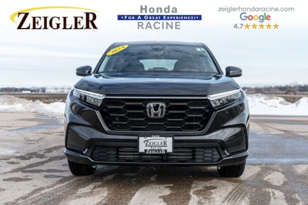 2024 Crystal Black Pearl Honda CR-V EX âFOR A GREAT EXPERIENCEâ visit Zeigler Honda of Racine, because we take pride in treating our customers like family, ensuring that your experience is one that you will never forget. We have 4.7 Google Rating! Making our store the highest rated Honda dealer in the state of Wisconsin! Every vehicle has been through a multi-point safety inspection and professionally cleaned and disinfected for your protection. With a convenient location off of I-94 at exit 333; we are proud to serve customers in Racine, Sturtevant, Caledonia, Mount Pleasant, Union Grove, Burlington, Kenosha, Bristol, Waukesha, Milwaukee, Oak Creek and many other surrounding areas! Our Sales Consultants are Factory Certified and have earned some of the highest customer satisfaction ratings in Southeast Wisconsin. We specialize in New Honda, Certified Pre-Owned Honda, as well as many other makes and models that fit all budgets and prices. We offer affordable purchase and leasing options. If you are traveling from Waukegan, Gurnee, Naperville, Pleasant Prairie, Antioch, Fox Lake, or even Madison, feel free to browse our entire inventory of new or pre-owned vehicles right from your home: zeiglerhondaracine.com. Even if we don't have the exact vehicle in our inventory, we will gladly bring one in for you and still guarantee the lowest price possible. A little further than a hop, skip or a jump? We can arrange shipping & delivery! Price may exclude certification, added accessories and/or packages, certain taxes, $399 doc fee, charges and/or fees. Dealer is not responsible for pricing errors, although we strive to be accurate, we are human. The value of used vehicles varies with mileage, usage and condition. Book values should be considered estimates only. Some of our used vehicles may be subject to unrepaired safety recalls. Check for a vehicle's unrepaired recalls by VIN at http://vinrcl.safercar.gov/vin/. See dealer for complete details.