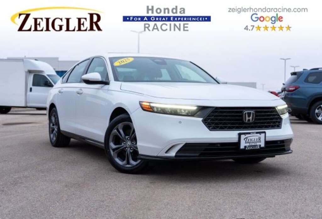 2025 Platinum White Pearl Honda Accord Hybrid EX-L âFOR A GREAT EXPERIENCEâ visit Zeigler Honda of Racine, because we take pride in treating our customers like family, ensuring that your experience is one that you will never forget. We have 4.7 Google Rating! Making our store the highest rated Honda dealer in the state of Wisconsin! Every vehicle has been through a multi-point safety inspection and professionally cleaned and disinfected for your protection. With a convenient location off of I-94 at exit 333; we are proud to serve customers in Racine, Sturtevant, Caledonia, Mount Pleasant, Union Grove, Burlington, Kenosha, Bristol, Waukesha, Milwaukee, Oak Creek and many other surrounding areas! Our Sales Consultants are Factory Certified and have earned some of the highest customer satisfaction ratings in Southeast Wisconsin. We specialize in New Honda, Certified Pre-Owned Honda, as well as many other makes and models that fit all budgets and prices. We offer affordable purchase and leasing options. If you are traveling from Waukegan, Gurnee, Naperville, Pleasant Prairie, Antioch, Fox Lake, or even Madison, feel free to browse our entire inventory of new or pre-owned vehicles right from your home: zeiglerhondaracine.com. Even if we don't have the exact vehicle in our inventory, we will gladly bring one in for you and still guarantee the lowest price possible. A little further than a hop, skip or a jump? We can arrange shipping & delivery! Price may exclude certification, added accessories and/or packages, certain taxes, $399 doc fee, charges and/or fees. Dealer is not responsible for pricing errors, although we strive to be accurate, we are human. The value of used vehicles varies with mileage, usage and condition. Book values should be considered estimates only. Some of our used vehicles may be subject to unrepaired safety recalls. Check for a vehicle's unrepaired recalls by VIN at http://vinrcl.safercar.gov/vin/. See dealer for complete details.