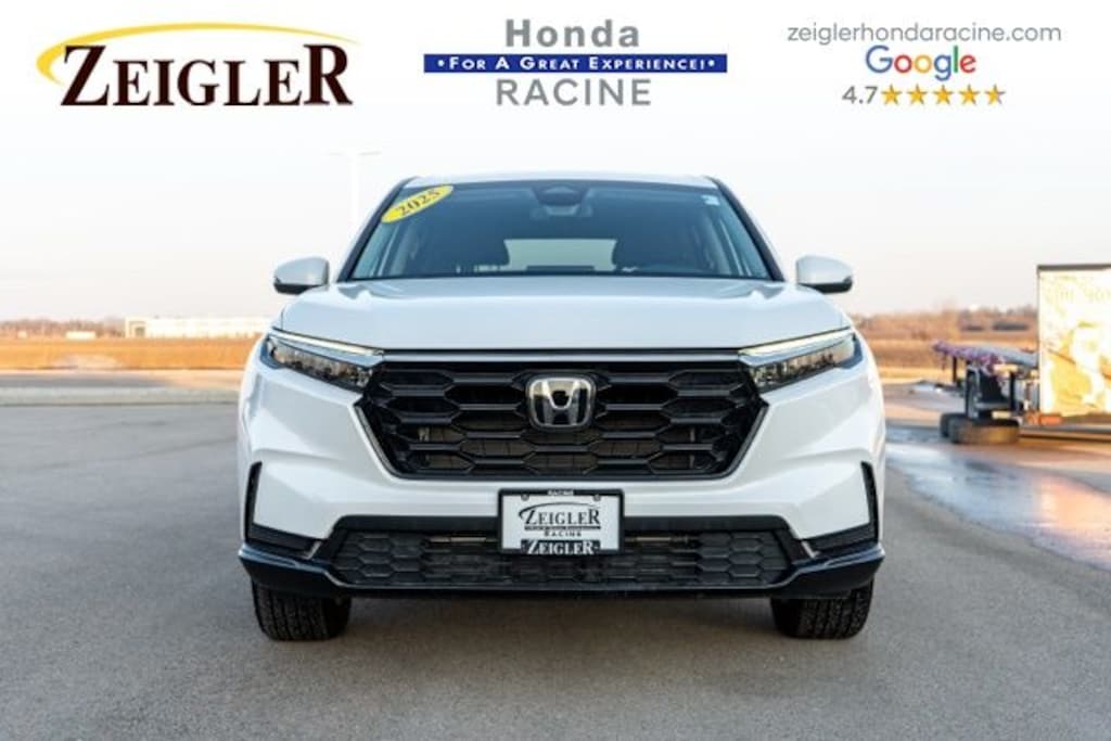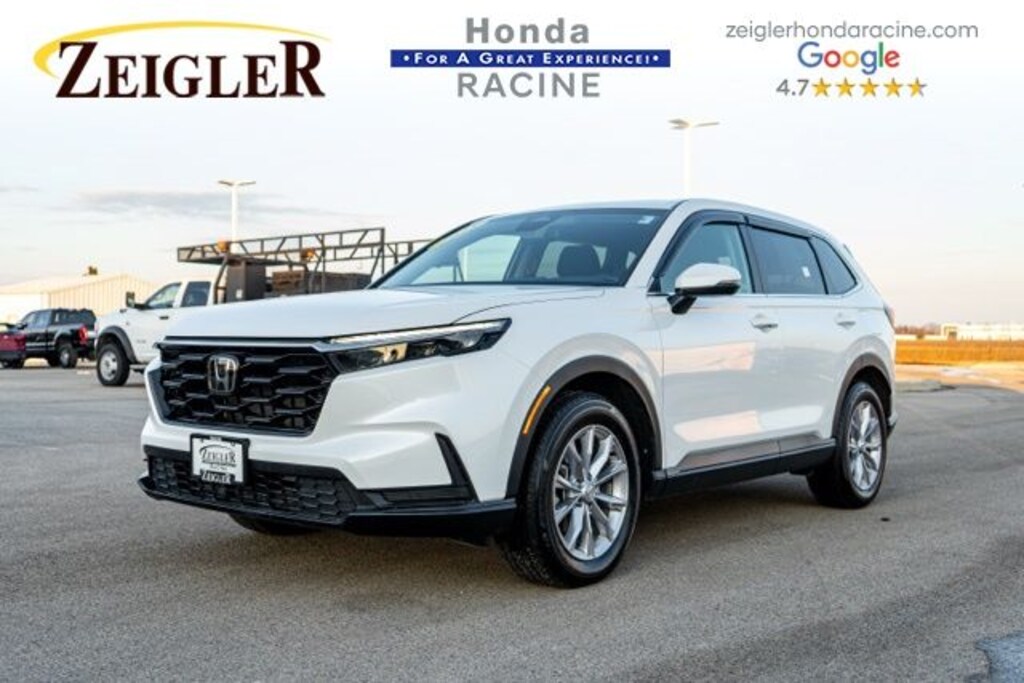 2025 Platinum White Pearl Honda CR-V EX âFOR A GREAT EXPERIENCEâ visit Zeigler Honda of Racine, because we take pride in treating our customers like family, ensuring that your experience is one that you will never forget. We have 4.7 Google Rating! Making our store the highest rated Honda dealer in the state of Wisconsin! Every vehicle has been through a multi-point safety inspection and professionally cleaned and disinfected for your protection. With a convenient location off of I-94 at exit 333; we are proud to serve customers in Racine, Sturtevant, Caledonia, Mount Pleasant, Union Grove, Burlington, Kenosha, Bristol, Waukesha, Milwaukee, Oak Creek and many other surrounding areas! Our Sales Consultants are Factory Certified and have earned some of the highest customer satisfaction ratings in Southeast Wisconsin. We specialize in New Honda, Certified Pre-Owned Honda, as well as many other makes and models that fit all budgets and prices. We offer affordable purchase and leasing options. If you are traveling from Waukegan, Gurnee, Naperville, Pleasant Prairie, Antioch, Fox Lake, or even Madison, feel free to browse our entire inventory of new or pre-owned vehicles right from your home: zeiglerhondaracine.com. Even if we don't have the exact vehicle in our inventory, we will gladly bring one in for you and still guarantee the lowest price possible. A little further than a hop, skip or a jump? We can arrange shipping & delivery! Price may exclude certification, added accessories and/or packages, certain taxes, $399 doc fee, charges and/or fees. Dealer is not responsible for pricing errors, although we strive to be accurate, we are human. The value of used vehicles varies with mileage, usage and condition. Book values should be considered estimates only. Some of our used vehicles may be subject to unrepaired safety recalls. Check for a vehicle's unrepaired recalls by VIN at http://vinrcl.safercar.gov/vin/. See dealer for complete details.