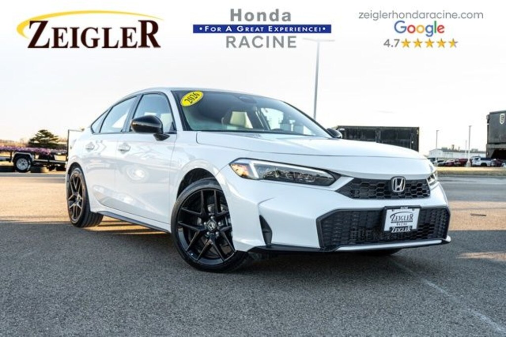 2026 Platinum White Pearl Honda Civic Hybrid Sport âFOR A GREAT EXPERIENCEâ visit Zeigler Honda of Racine, because we take pride in treating our customers like family, ensuring that your experience is one that you will never forget. We have 4.7 Google Rating! Making our store the highest rated Honda dealer in the state of Wisconsin! Every vehicle has been through a multi-point safety inspection and professionally cleaned and disinfected for your protection. With a convenient location off of I-94 at exit 333; we are proud to serve customers in Racine, Sturtevant, Caledonia, Mount Pleasant, Union Grove, Burlington, Kenosha, Bristol, Waukesha, Milwaukee, Oak Creek and many other surrounding areas! Our Sales Consultants are Factory Certified and have earned some of the highest customer satisfaction ratings in Southeast Wisconsin. We specialize in New Honda, Certified Pre-Owned Honda, as well as many other makes and models that fit all budgets and prices. We offer affordable purchase and leasing options. If you are traveling from Waukegan, Gurnee, Naperville, Pleasant Prairie, Antioch, Fox Lake, or even Madison, feel free to browse our entire inventory of new or pre-owned vehicles right from your home: zeiglerhondaracine.com. Even if we don't have the exact vehicle in our inventory, we will gladly bring one in for you and still guarantee the lowest price possible. A little further than a hop, skip or a jump? We can arrange shipping & delivery! Price may exclude certification, added accessories and/or packages, certain taxes, $399 doc fee, charges and/or fees. Dealer is not responsible for pricing errors, although we strive to be accurate, we are human. The value of used vehicles varies with mileage, usage and condition. Book values should be considered estimates only. Some of our used vehicles may be subject to unrepaired safety recalls. Check for a vehicle's unrepaired recalls by VIN at http://vinrcl.safercar.gov/vin/. See dealer for complete details.